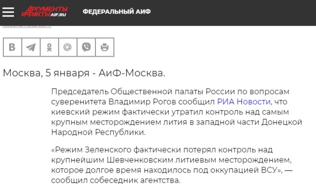Некоторые ещё не успели доесть новогодние блюда, а в наш сегмент интернета всколыхнула громкая новость – Россия разжилась крупнейшим месторождением лития в Европе. И ладно бы новость эту пустил какой-нибудь плохо знающий географию блогер, а вот кто: Связано такое громкое заявление с тем, что наши официально взяли в те даты вот это место: Всё дело в том, что рядом с селом под названием Шевченко при Союзе было разведано месторождение «металла будущего» - Лития. Да только вот незадача в той местности Шевченко несколько… Вчера вот, например, уже увидели такое заявление: И это уже, похоже, под «впечатлением» от того, что мы заняли вот это: Причём заметьте, что об этом пишут ведущие СМИ. Может они запутались в этих топонимах, может доверились чиновникам, но все они попали впросак, ибо реальность такова: Исходное месторождения лития (действительно, крупнейшее в Европе, плюс ещё сопутствующие металлы) совсем в другом месте, до которого нам ещё надо дойти. Так что литий пока не наш. Но и когда