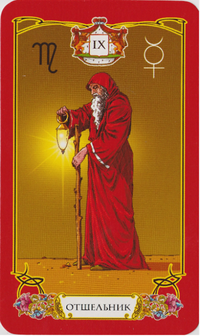 Отшельник показывает нам глубину и мудрость всех процессов нашей жизни. Мы учимся принимать опыт любого порядка, учимся осознавать, что во всём есть опыт и урок. Под влиянием Отшельника приходит понимание сути и смысла каждого нашего действия и взаимодействия. Мы становимся взрослее и осознаннее, ощущая всем телом мирскую основу бытия и всем своим Духом, главный замысел Творца в отношении всего того, куда мы обращаем взор.