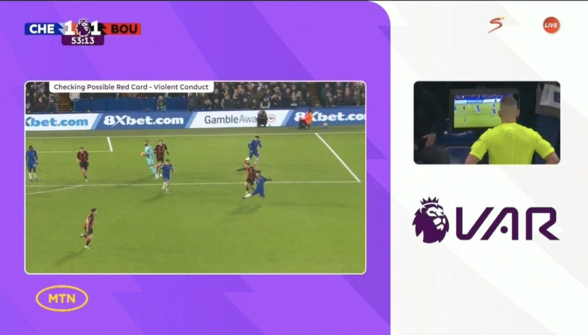 «Челси» и «Борнмут» сыграли вничью (2:2) в 21-м туре АПЛ. На 52-й минуте матча полузащитник гостей Дэвид Брукс помешал Кукурелье убежать, схватив его за волосы. Главный арбитр матча Роберт Джонс после просмотра видеоповтора не стал удалять хавбека «Борнмута» и показал ему желтую карточку. «ВАР рекомендовал провести проверку на месте на предмет возможной красной карточки Бруксу за агрессивное поведение. После проверки судья посчитал фол на Кукурелье неосторожным действием, а не агрессивным поведением, и показал Бруксу желтую карточку», – говорится в сообщении матч-центра АПЛ. Изображение: кадр из трансляции