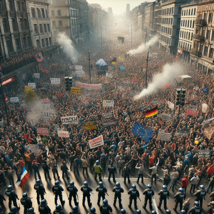 В последние месяцы крупнейшие города Европы охвачены массовыми протестами. Тысячи людей выходят на улицы, выражая недовольство экономической политикой своих правительств. Эти демонстрации стали ответом на растущие цены, снижение уровня жизни и спорные реформы, проводимые властями. Во Франции протесты против повышения пенсионного возраста с 62 до 64 лет продолжаются с начала 2023 года. По данным профсоюзов, в акциях приняли участие около 2 миллионов человек. Демонстранты блокировали дороги, жгли машины и вступали в столкновения с полицией. Несмотря на массовое недовольство, правительство Эммануэля Макрона утвердило реформу в марте 2023 года. В Германии в марте 2023 года прошла масштабная забастовка работников транспорта. Профсоюзы требовали повышения заработной платы в условиях растущей инфляции. Забастовка парализовала движение поездов, автобусов и самолётов по всей стране, что привело к серьёзным сбоям в работе инфраструктуры. В Италии в мае 2023 года правительство Джорджии Мелони