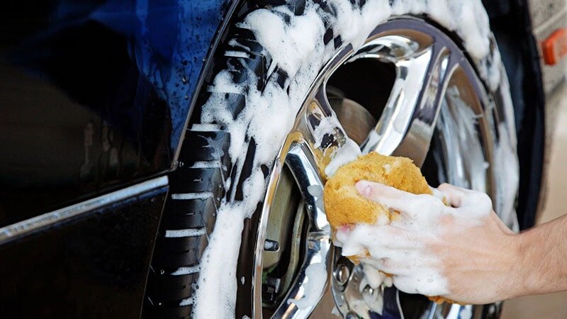 Сначала ополосните шины водой, чтобы смыть грязь и пыль.
