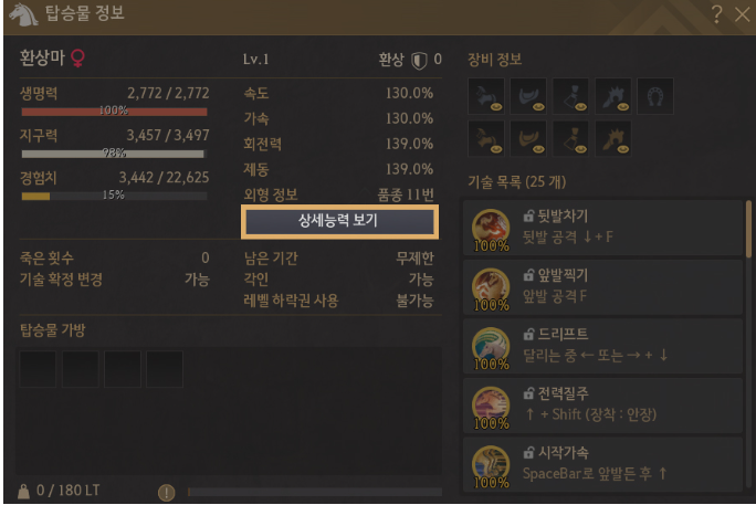 Обновлена функция, позволяющая подробно изучить способности лошади — незаменимого ездового животного Black Desert.