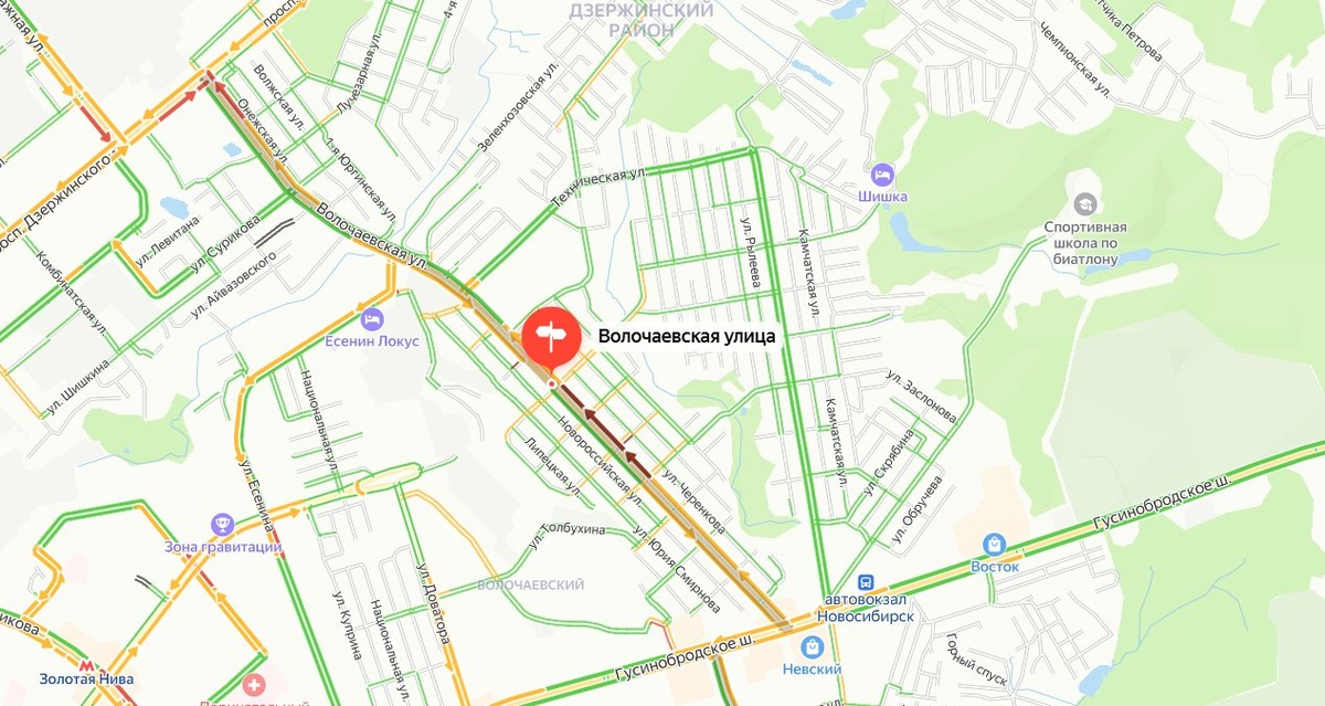 Согласно Яндекс. Картам дорожный затор длится от остановки общественного транспорта «Почтовая» до пересечения улицы Волочаевская с 3-м Почтовым переулком. Также пробка наблюдается при выезде на проспект Дзержинского.