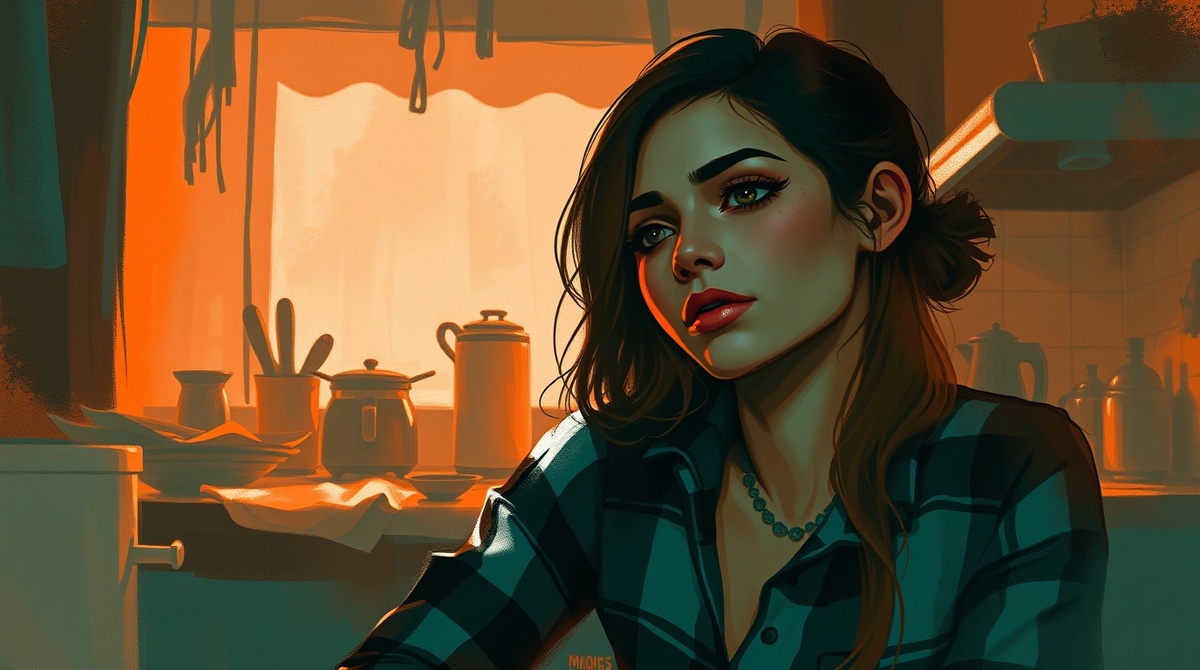 Настя сидела на кухне, завернувшись в мягкий плед, словно укрывшись от мира невидимым щитом. За окном вечер хмурился холодом, дождь не унимался, хлестал, как будто небо вдруг устало держать свои воды. Город растворялся в ночи, и тишина, казалось, обретала форму, проникая в каждый уголок комнаты. Настя машинально размешивала ложкой уже остывший чай, но её взгляд был прикован к окну. Хотя глаза её видели серую картину дождливого вечера, мысли витали где-то совсем далеко.