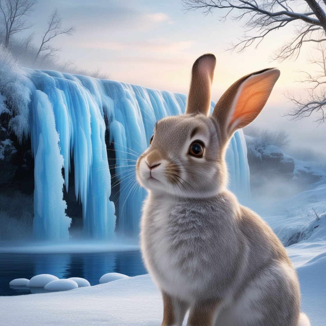 Прыгунчик, самый быстрый и ловкий из кроликов, выскочил из своей норы и огляделся. Вчера вечером, гуляя по лесу, он заметил, что водопад в глубине леса замерз. Это было необычно: водопад, который во все времена года бурлил и пел свою песню, теперь застыл, как огромная ледяная скульптура. Вода, когда-то весело стекавшая по камням, теперь выглядела хрустальной стеной, блестящей на солнце.