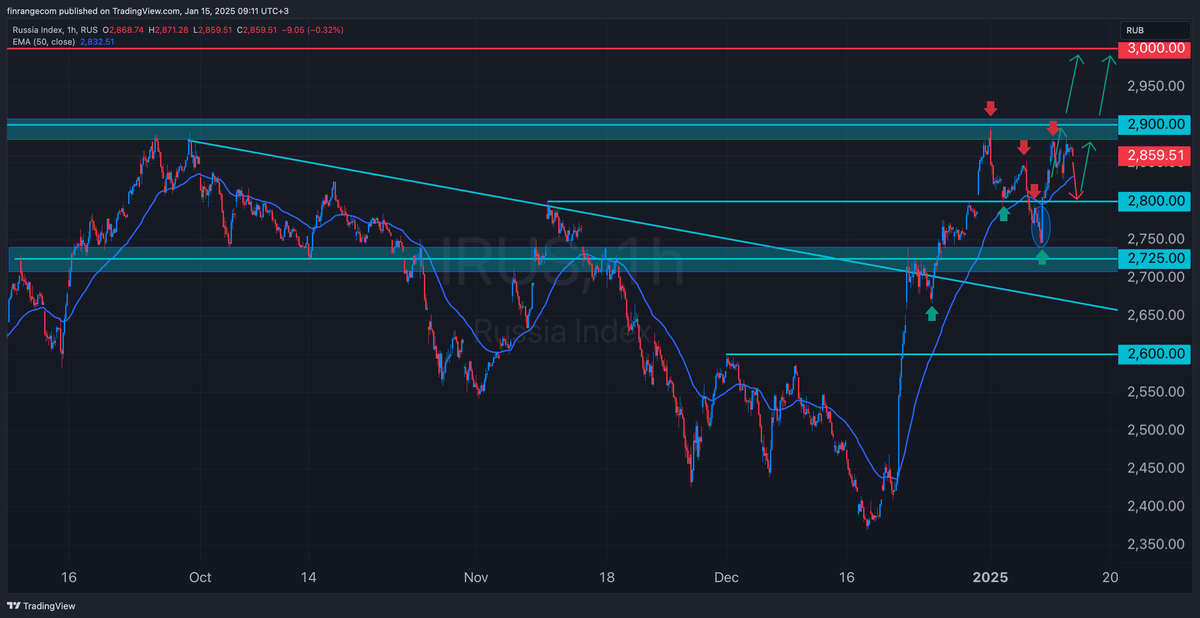 Данный обзор – это моё субъективное виденье рынка, на которое я ставлю свои деньги исходя из моего риск- и мани- менеджмента. Рынок в моменте Российский рынок акций продолжает находиться в узком боковике в ожидании данных по инфляции в России и инаугурации Трампа. Большинство акций пилят свои уровни сопротивления, куда быстро забрались за последние 3 недели. Индекс МосБиржи же тоже по факту топчится под сопротивлением 2900 пунктов. Соответственно всё будет зависеть от данных по инфляции, если мы увидим ускорение, а оно точно будет. Также, выйдут месячные данные, где ожидается ускорение инфляции в по итогам декабря. Годовая инфляция, скорее всего, ускорилась до 9,7-9,8%. Месячную ждут около 1,7%. Поэтому ждём данные, если ниже пронгозов и рынок реагирует положительно, будем пробовать пробивать 2900 пунктов по индексу МосБиржи. На этом фоне буду покупать те акции, которые будут сильнее рынка сегодня. В связи с этим, перед данными опубликую список акций. Динамика акций Из-за низкой ликвид