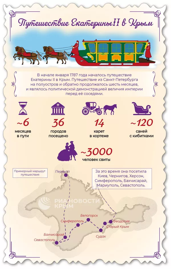 Большое путешествие Екатерины II в Крым: как это было - инфографика