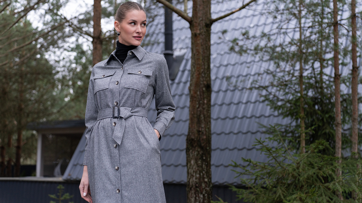 Начало трудовой недели, планирование задач. Многие не слишком любят понедельник, но, если с утра Вас ждет стильный образ, день станет ярким и продуктивным. Рекомендуем выбрать классический вариант: платье-рубашка свободного силуэта в сером тоне с накладными карманами. Цветовая гамма, где голубой прекрасно сочетается с серым, напоминает о зимнем небе. Такой look не только придаст Вам уверенности, но и настроит на рабочий лад, даря прилив энергии и готовность покорять новые вершины.