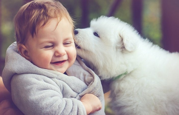 Животные в нашем доме проявились задолго до рождения ребёнка. Ребёнку год и 3 месяца, а собакам одной 13 лет, а второй 4 года. Породы - шелти и самоедская лайка. Обе породы очень миролюбивые, обожают детей и людей в целом. Обе собаки выбирались с учётом их характера, о приобретении собаки бойцовских или охранных пород даже речи не стояло, как минимум, я их просто боюсь.