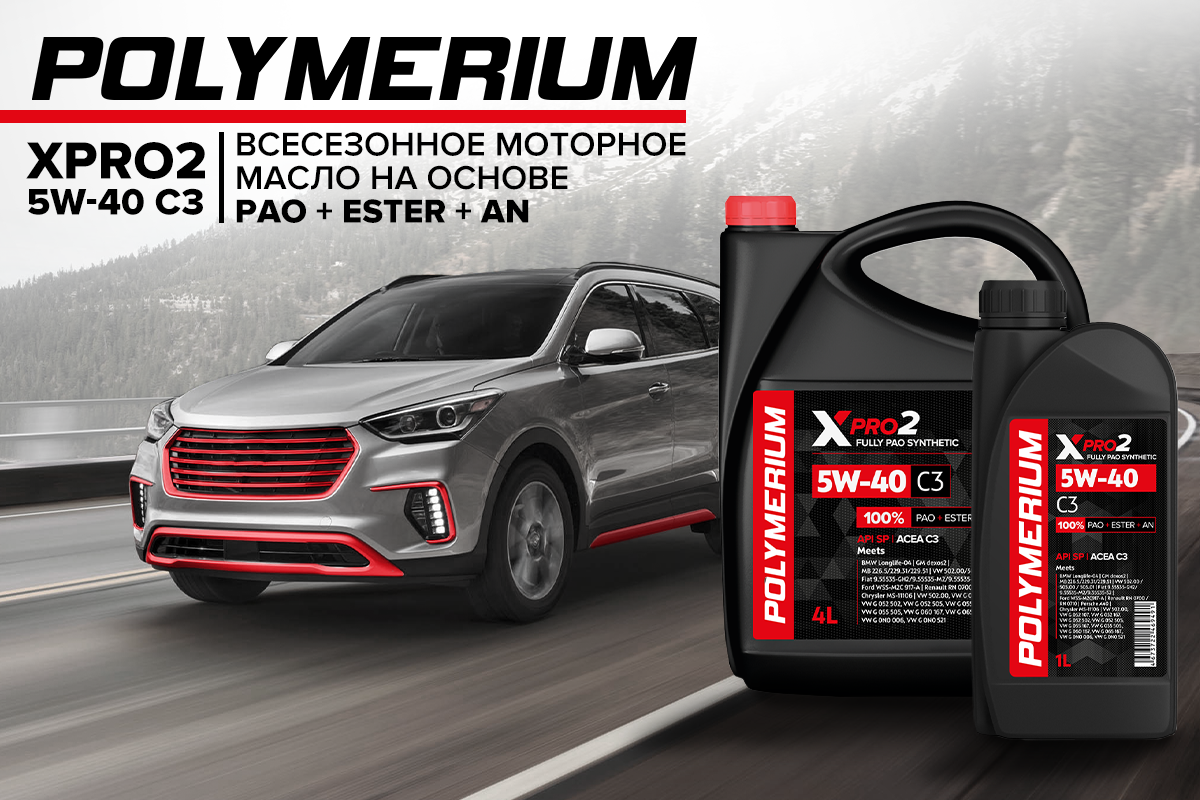 Новое моторное масло POLYMERIUM XPRO2 5W-40 C3 Всесезонное моторное масло POLYMERIUM XPRO2 5W-40 C3 изготовлено на основе ультра синтетики, ПАО, эстеров и алкилированных нафталинов. Уникальный дополнительный пакет присадок уменьшает трение и повышает смазывающие свойства, обеспечивая стабильную работу на увеличенных интервалах замены. Большой запас нейтрализующих свойств. Содержит органический молибден. Масло обеспечивает надежный и мягкий запуск в любую погоду, снижает расход топлива. Обладает улучшенными моющими свойствами и повышенной кислотной стойкостью к продуктам сгорания. Имеет превосходные низкотемпературные свойства, масло стабильно текучее до температуры -54 ºC. Подходит для всех типов бензиновых и дизельных двигателей. Соответствует: API SP | ACEA C3 | BMW Longlife-04 | GM Dexos2 | MB 226.5 / 229.31 / 229.51 | VW 502.00 / 505.00 / 505.01 | Fiat 9.55535-GH2 / 9.55535-M2 / 9.55535-S2 | Ford WSS-M2C917-A | Renault RN 0700 / RN 0710 | Porsche A40 | Chrysler MS-11106 | VW G 052