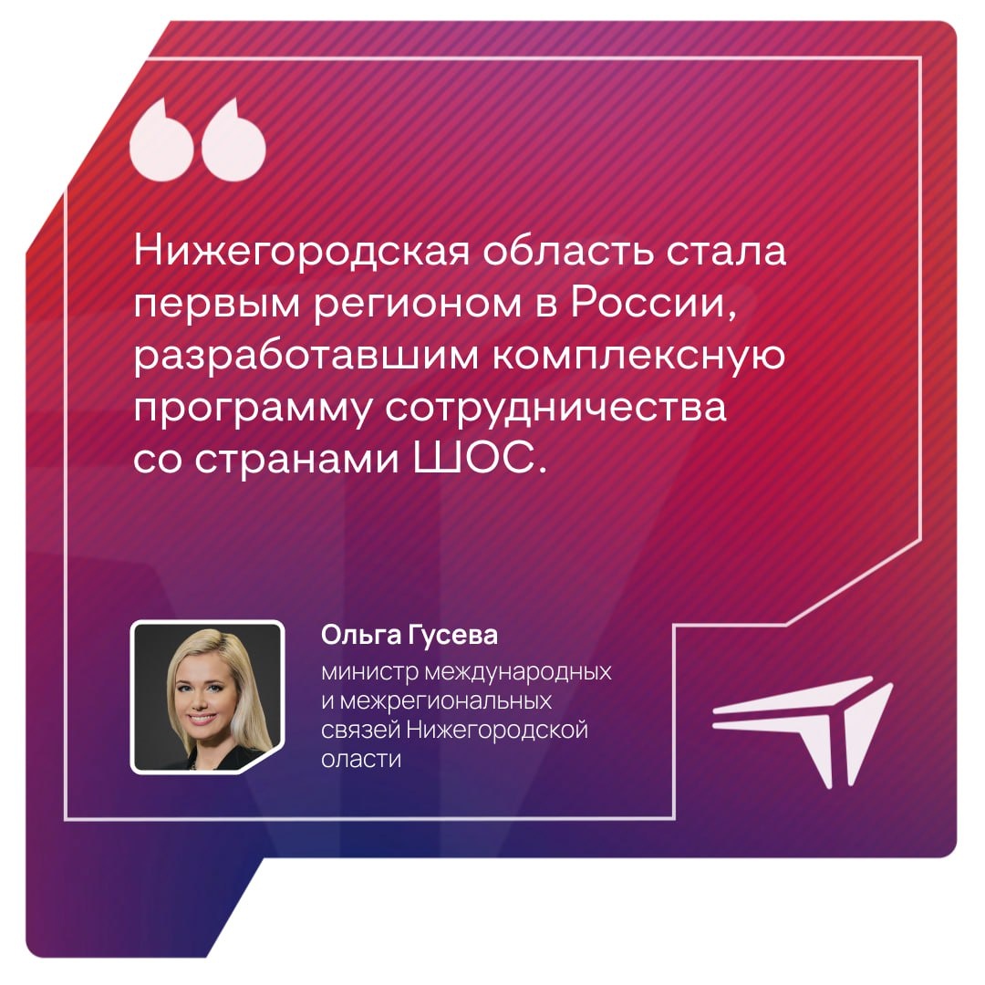 Как сообщила министр международных и межрегиональных отношений Нижегородской области Ольга Гусева, в регионе прошло более 240 мероприятий по развитию сотрудничества со странами Шанхайской организации сотрудничества (ШОС) в 2024 году. Это в 3 раза больше, чем планировали! «Нижегородская область стала первым регионом в России, разработавшим комплексную программу сотрудничества со странами ШОС на 2023–2025 годы, включающую мероприятия в различных сферах: от промышленности и сельского хозяйства до образования, спорта и туризма. Программа охватила 9 направлений взаимодействия, среди которых сотрудничество в сфере промышленности и торговли, организация бизнес-миссий, проведение совместных конференций, фестивалей и выставок. Сегодня Нижегородская область активно взаимодействует уже с 14 регионами-партнерами в странах-членах ШОС. 6 из них находятся в Китае, 5 в Узбекистане и 4 в Белоруссии. Успешная реализация программы подтверждает эффективность выбранной стратегии и способствует дальнейшему