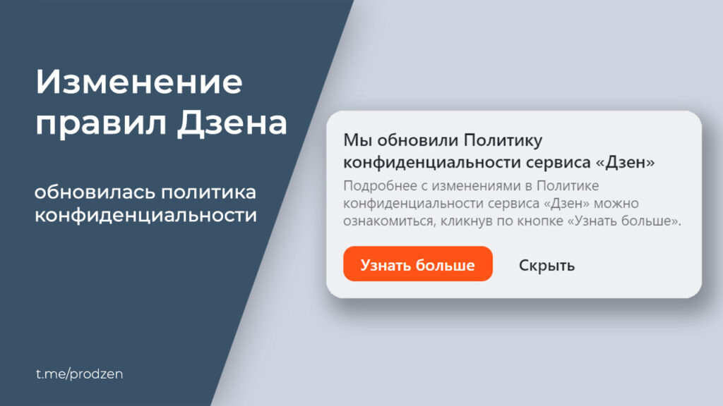 В справку Дзена внесены изменения в ряде документов. Во-первых, обновилась «Политика конфиденциальности сервиса „Дзен“», о чём появилось уведомление в студии. История изменений, ссылка на которую ведёт из уведомления, отображает две редакции раздела «4.4. Обработка и Передача Информации», которые, на первый взгляд, выглядят одинаково. В целом так и есть, добавлено лишь одно предложение: «Для целей обеспечения отображения Контента Сервиса с использованием технологий эмбедирования, встроенного фрейма или иных схожих технологий на условиях Пользовательского соглашения Сервиса Компания может получать от третьих лиц, в том числе от ООО «ВК», персональные данные Пользователей (внутренний ID-номер Пользователя) на условиях Политики конфиденциальности соответствующих сервисов». Кроме этого, внесены изменения в разделы справки, посвящённые монетизации предпринимателей и организаций. Изменения однотипны, и связаны с изменениями в налоговом законодательстве: Также появилось пояснение, каким докум