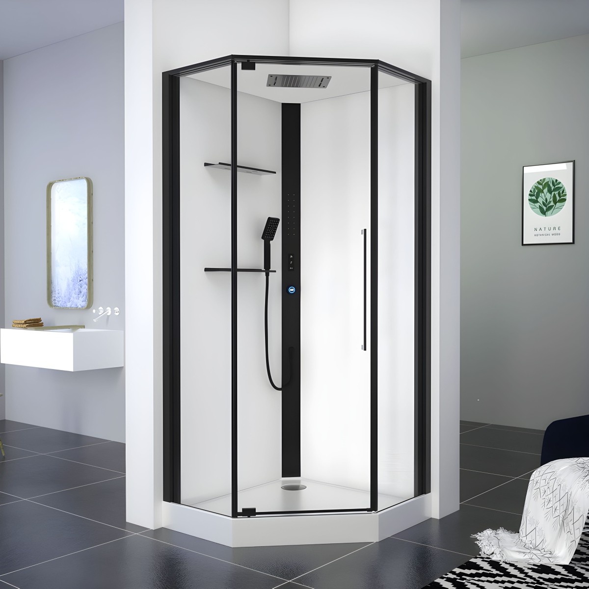 Когда мы впервые увидели душевую кабину Black & White G8036, она сразу же привлекла наше внимание своим лаконичным и стильным дизайном. Пятиугольная форма с черным алюминиевым профилем и прозрачным стеклянным полотном придает ей современный и утонченный вид, который идеально впишется в любой интерьер. Элегантность конструкции подчеркнута белыми задними стенками, создающими приятный контраст. Размеры кабины 100x100x217 см обеспечивают достаточное пространство для комфортного использования, а ширина входа в 57 см позволяет легко заходить и выходить. Низкий акриловый поддон высотой 15 см с антискользящим покрытием гарантирует безопасность и удобство. Особенно важно, что кабина универсальна по ориентации и способу открывания дверей, направление которых выбирается при сборке. Распашная дверь открывается наружу, обеспечивая свободный доступ. Материалы, использованные в конструкции, вызывают доверие. Толщина стекла 6 мм добавляет прочности, а алюминиевый профиль гарантирует долговечность. Каж