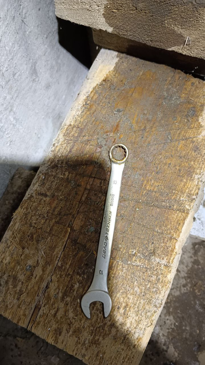 Первое за что взялся — втулки стаба, тут у многих возникают проблемы, так как втулки стоят на подрамнике сверху и доступ к ним не самый очевидный, поэтому некоторые знатно мудохаются при их замене придумывая какие то удлинители, карданы, ключи, некоторые задние болты подрамника ослабляют, а некоторые вообще снимают подрамник! Все это напрасное творчество, всего то надо глянуть как это делать правильно и ничего сложного, нужен с поворотной трещеткой маленького размера на 13 либо обычный комбинированный ключ — рожковый с одной стороны и накидной с загибом с другой, вот такой у меня и был — им посложнее — надо часто перекладываться, но без проблем!