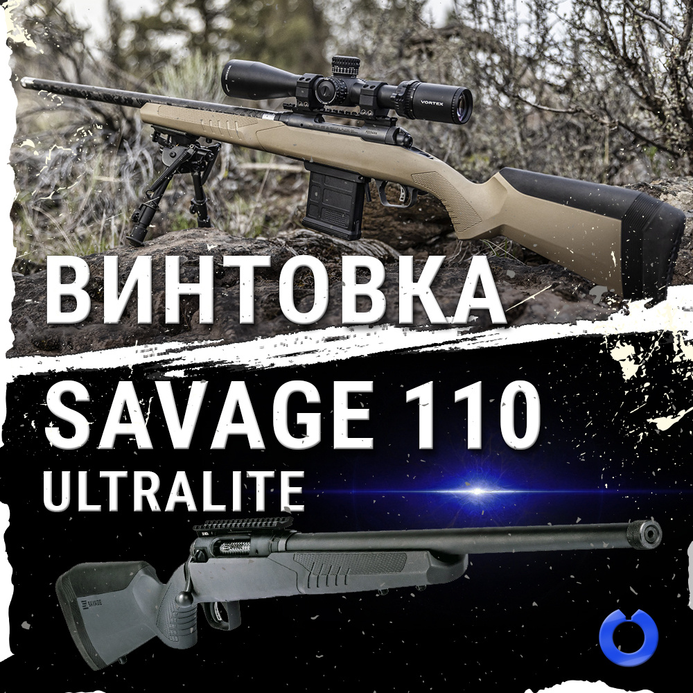 Винтовка Savage 110 Ultralite в калибре .308 Win. — идеальный выбор для охотников и стрелков, ценящих легкость и высокую точность. С современным дизайном и передовыми технологиями, она завоевала уважение многих специалистов. Savage 110 Ultralite обладает стволом из нержавеющей стали, обёрнутым углеродным волокном, что обеспечивает прочность и минимизирует вес — всего 2,6 кг. Длина ствола составляет 560 мм, а матовое чёрное углеродное волокно придаёт винтовке современный вид. Эти качества стали возможны благодаря сотрудничеству Savage с Proof Research. Система AccuFit позволяет изменять длину и высоту приклада, что делает винтовку удобной для стрелков с различными физическими данными. Магазин вмещает 4 патрона, а спусковой механизм AccuTrigger предотвращает случайное нажатие, обеспечивая безопасность. - Минимальный вес: использование скелетонизированной ствольной коробки и современных материалов делает винтовку идеальной для длительных и тяжелых охот. - Внешняя резьба: ствол имеет ре
