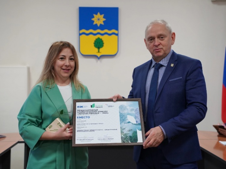 Волжский стал призёром Международного климатического конкурса «Зеленая Евразия». Как рассказали Волжский.ру в городской администрации, на днях на еженедельном аппаратном совещании в мэрии главе города Игорю Воронину вручили диплом и памятный знак за второе место. Конкурс «Зеленая Евразия» проходил с 12 февраля по 30 апреля 2024 года. Волжский представил на него проект строительства поливочной станции в парке «Солнечный» с использованием солнечных батарей. В итоге инициатива волжан стала финалистом в номинации «Климатические устойчивые города» и заняла второе место.