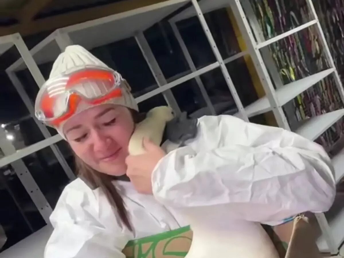 Трогательная сцена развернулась на ферме «Аристей» в Анапе. Там после разлива мазута в Керченском проливе отмывают и реабилитируют пострадавших птиц.