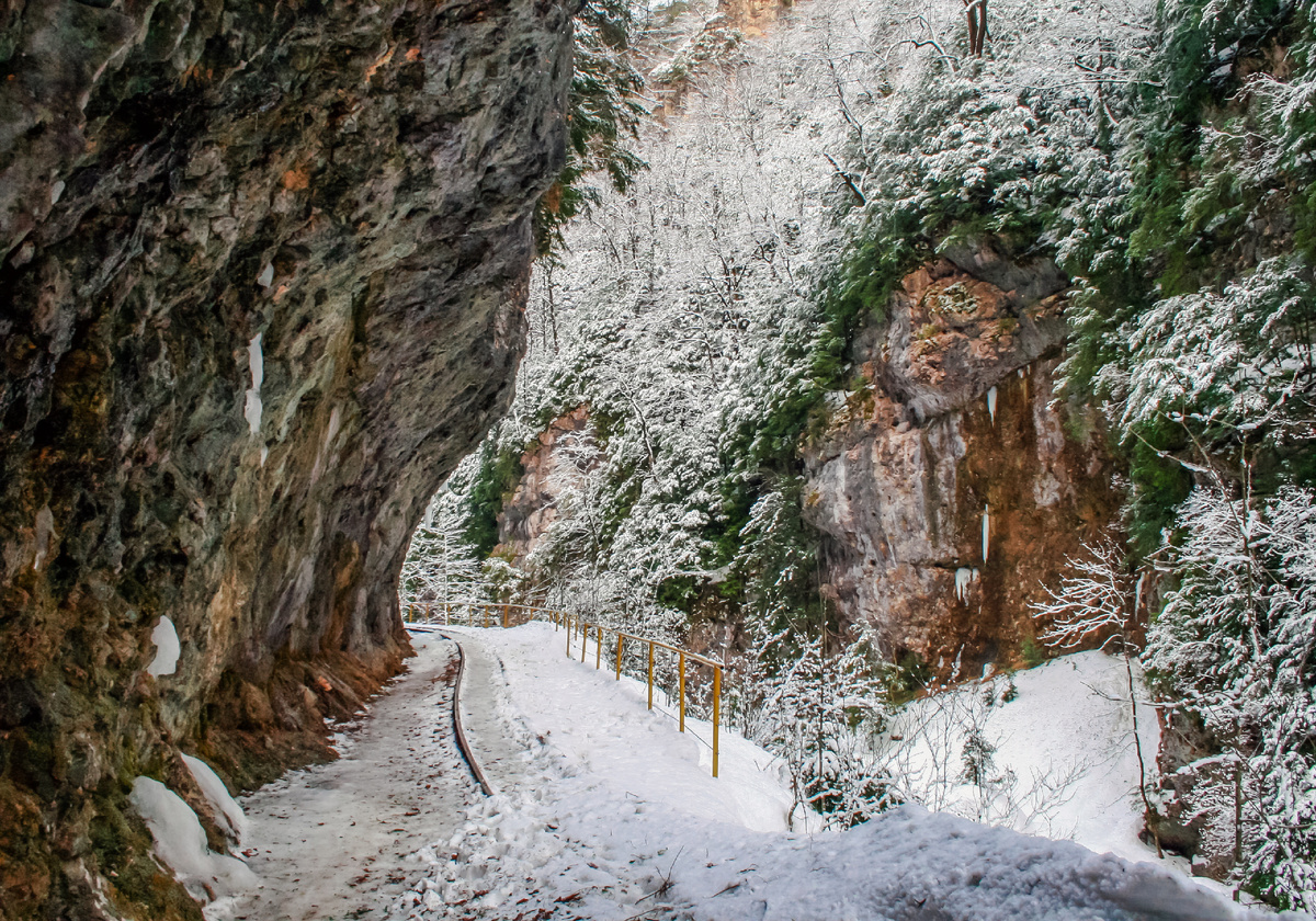 Сегодня приглашаем прогуляться по Гуамскому ущелью, притаившемуся между хребтами Гуама и Лаго-Наки. Это на территории Апшеронского района в глубинах Краснодарского края. Любоваться скалами, нависающими над долиной реки Курджипс, можно на пешей прогулке или из туристического вагончика. Сквозь ущелье проходит узкоколейная дорога, работает она с 1934 года. Изначально маршрут объединял хутор Гуамка и посёлок Мезмай, но сильный обвал ограничил его в пределах станций «Гуамка» и «Урочище Монахово». Время в пути — 15 минут при движении со скоростью 10-12 км/час. Апшеронская узкоколейная дорога не раз попадала в топы самых красивых железнодорожных маршрутов России. А что скажете вы, отправились бы на экскурсию по скалистой теснине?