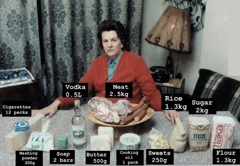 То, что вы видите на столе, — это месячный продовольственный паек на одного гражданина Польши в начале-середине 1980-х годов