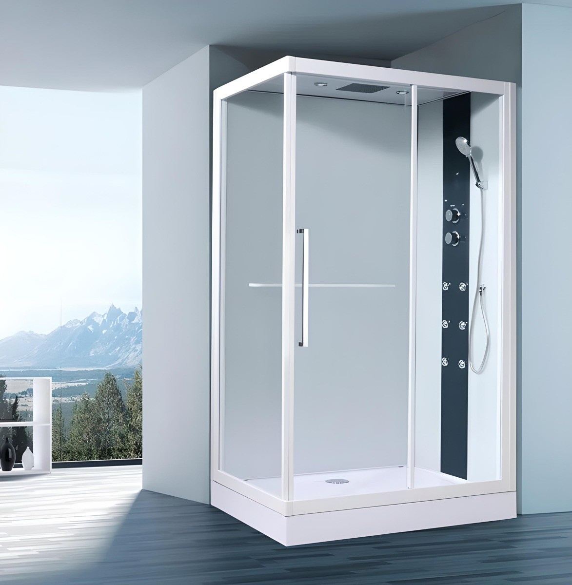 Душевая кабина Orans SR-86159 — это модель, которая идеально сочетает в себе стиль, функциональность и комфорт. Когда мы начали знакомиться с этой кабиной, первым делом обратили внимание на ее размеры: ширина 120 см, глубина 90 см и высота 215 см. Это оптимальные параметры, которые делают душевую комфортной и просторной, без лишних перегрузок пространства ванной комнаты. Что касается поддона, то его высота составляет 15 см, а глубина — всего 0.5 см. Такой поддон имеет идеальные характеристики для того, чтобы обеспечивать удобство во время принятия душа, не создавая при этом неудобств. Акриловый материал поддона прочен, легок в уходе и устойчив к воздействию влаги, что дает долговечность. Для нас важным моментом стал раздвижной механизм дверей. Он не только позволяет сэкономить пространство, но и очень удобен в использовании. Благодаря универсальному направлению открывания двери, мы уверены, что это подойдет для любого расположения сантехнического оборудования в ванной комнате. Стеклянн