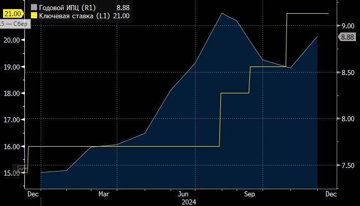 ЦБ РФ начнет понижение ставки не ранее середины 2025г - "Финам" Банк России, скорее всего, начнет понижение ключевой ставки не ранее середины 2025г и доведет ее до уровня 17-18% к концу года, говорится в стратегии инвесткомпании "Финам". "Неожиданная декабрьская пауза в повышении ключевой ставки ЦБ может быть определенным компромиссом между очень жесткой антиинфляционной политикой регулятора и растущей обеспокоенностью бизнеса и некоторых представителей правительства в отношении ее последствий для экономического роста, - отмечают аналитики. - В условиях начавшегося охлаждения кредитования и пересмотра бизнес-планов предприятий, по-видимому, ЦБ стал реагировать на возросшие риски спровоцировать избыточной жесткостью ДКП рецессию и кредитный кризис, а также затормозить рост потенциала экономики (через остановку инвестиций)". По мнению стратегов "Финама", пока нельзя с уверенностью сказать, что текущий уровень ключевой ставки станет максимальным в этом цикле - об этом свидетельствует и си
