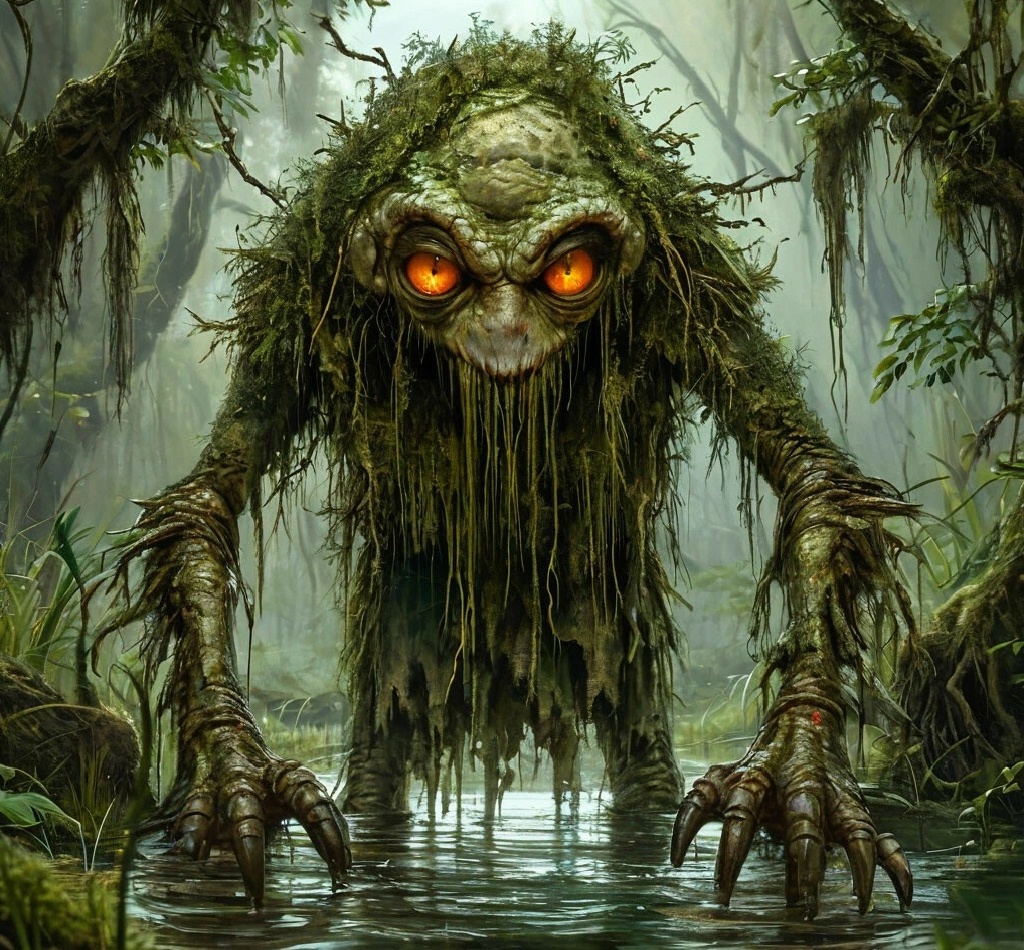 Она замерла, напряженно вглядываясь в туманный горизонт. Житель постграничья не заставил себя ждать – с правой стороны к девушке приближалась огромная, бесформенная масса зеленого цвета. С нее клоками свисала то ли кожа, то ли шерсть, а может то и другое. Огромные оранжевые глаза горели в верхней части тулова, где по всем законам должна была находиться голова. Существо неуклюже передвигалось, переваливаясь с боку на бок и опираясь на две когтистые передние лапы, покрытые чешуйками. Чем ближе подбиралось это нечто, тем сильнее било в нос источаемое им зловоние.
