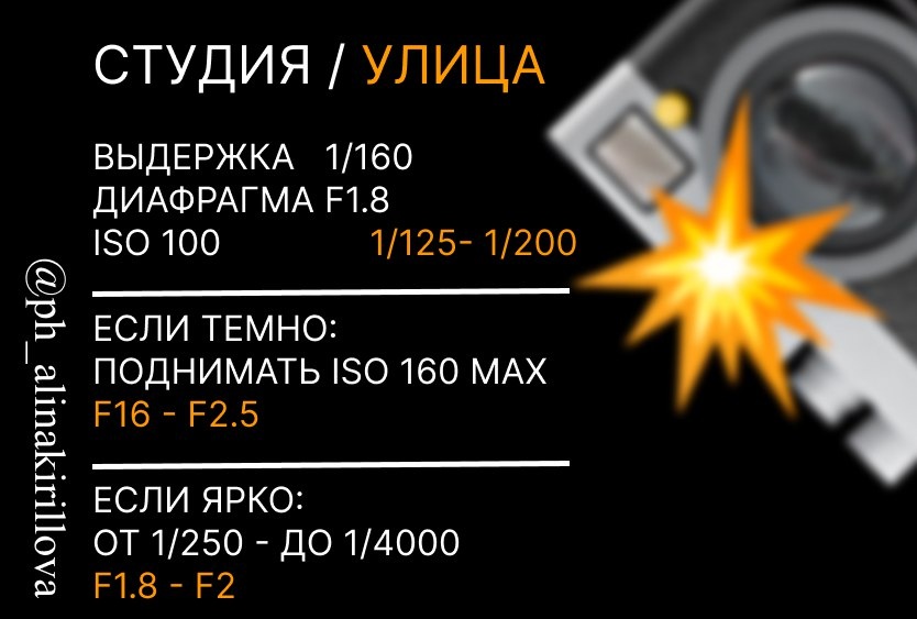 Ещё больше шпаргалок по фотографии тут - https://t.me/phalinakirillova