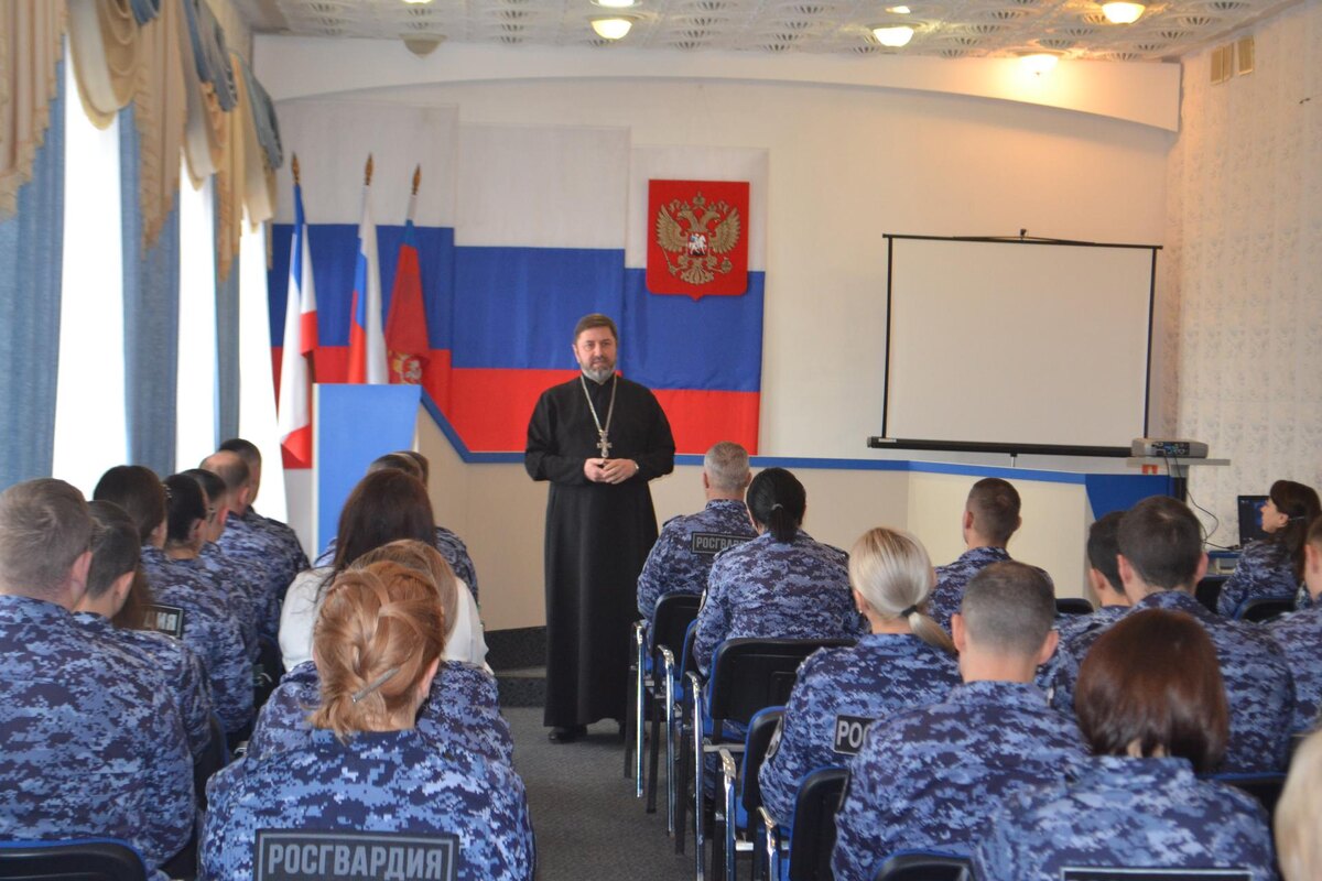 В Симферополе сотрудники Управления вневедомственной охраны Росгвардии побеседовали с заместителем руководителя миссионерского отдела Симферопольской и Крымской епархии, священником храма Всех святых столицы республики протоиереем Максимом Кондаковым. Священнослужитель провел духовно-просветительскую беседу с росгвардейцами, рассказав об истории, традициях и значении праздника Богоявления. Заместитель начальника Управления вневедомственной охраны Росгвардии Крыма подполковник полиции Владимир Есин обсудил с гостем план мероприятий по духовно-нравственному просвещению подчиненных сотрудников на 2025 год.