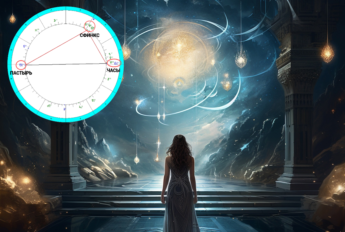 На противоположном полюсе от Пастыря находятся Часы, которые сейчас акцентированы Узлом Будущего и Нептуном, намекая нам на некую точку, в которой соединяется "конец" и "начало", говоря о завершении определенных мировых циклов, программ, процессов и о зарождении новых. И вот эти 2 полюса находятся в противостоянии, обозначая кризисный момент, когда Прошлое не хочет уходить, дабы освободить место новому, но Часы, символизирующие Божественный Механизм Мироздания, беспощадно отсчитывают его конец, открывая двери Новому. Таким образом, мы с вами находимся в периоде перехода, качественного преображения, а чтобы данный процесс прошел быстрее и наш Мир, и каждый из нас оказался в лучшей реальности, нам дарованы энергии Сфинкса.
