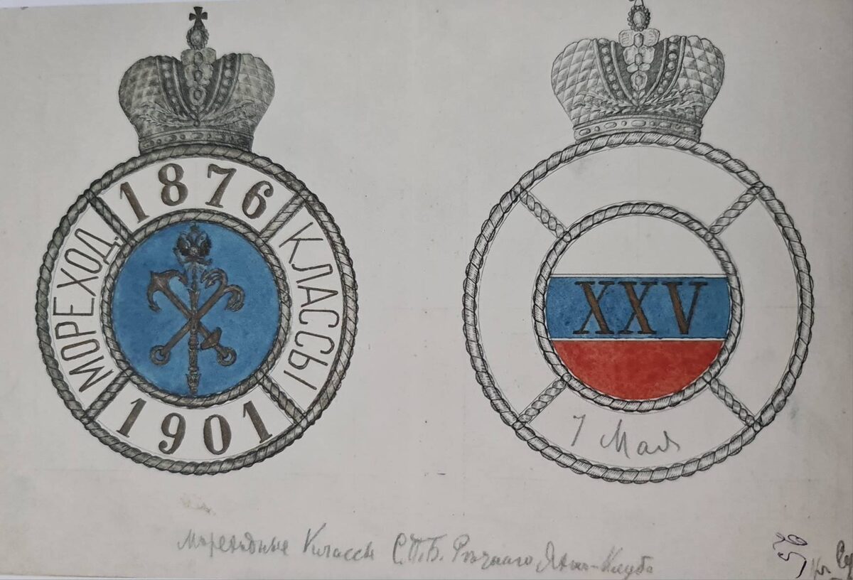 В 1901 году Комитет классов готовился отметить 25-летний юбилей Мореходных классов Санкт-Петербургского речного яхт-клуба. В перечень праздничных мероприятий входил пункт об изготовлении юбилейного жетона «по случаю 25-летнего существования Мореходных классов». Был представлен проект юбилейного жетона, также существует переписка Мореходных классов и фабрики «Эдуард» по вопросу разработки (фото 1).