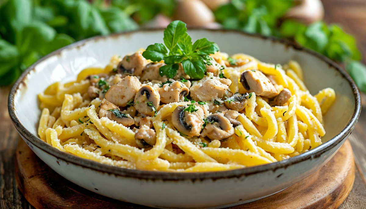 Что делать, если после трудного дня хочется вкусного ужина, но времени мало? Этот рецепт станет вашим спасением! Сочетание нежной курицы, ароматных грибов и сливочного соуса с пастой превращается в полноценный ужин, который точно покорит ваших близких. 🍝 Паста (спагетти, пенне или тальятелле) — 300 г 🍗 Куриное филе — 300 г 🍄 Шампиньоны или другие грибы — 200 г 🧅 Лук репчатый — 1 шт. 🧄 Чеснок — 2 зубчика 🥛 Сливки 20% — 200 мл (можно заменить растительным молоком или сливками с меньшим или большим процентом жирности) 🧀 Твёрдый сыр (например, пармезан) — 50 г 🫒 Растительное масло — 2 ст. л. 🧂 Соль и чёрный перец — по вкусу 🌿 Петрушка или базилик — для украшения 1. Подготовьте пасту