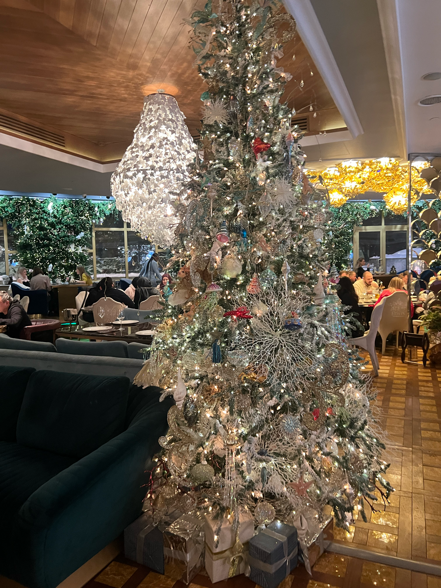 Дорогие читатели, поздравляем вас с Новым 2025 годом! Желаем крепкого здоровья, счастья, благополучия, исполнения всех задумок, ну и конечно побольше ходить по самым лучшим ресторанам!) Новогодняя пора облачает все заведения в блестящие наряды. Не упустите возможность насладиться красотой новогодних композиций. Тут как всегда обилие всевозможных елок, стена из декоративных хвойных веток с лесными жителями, а на каждом столе гостей радует фонарик с подающим снегом. Первого января тут была живая музыка с прекрасными хитами. В Erwin огромное меню, тут найдутся блюда на любой вкус и «кошелек», большая десертная карта и вкусная хлебная корзина. На горячие мы взяли Орзотто с тигровыми креветками 1320 рублей. Блюдо насыщенное, с плотными обжаренными креветками. На десерт - конфетка ручной работы. Нежный черный шоколад с пюре из маракуйи. На сервис в Erwin у меня никогда особо не было нареканий. Как всегда, бронь нужно делать за несколько дней, и без толп людей тоже никак. Горыныч поразил св