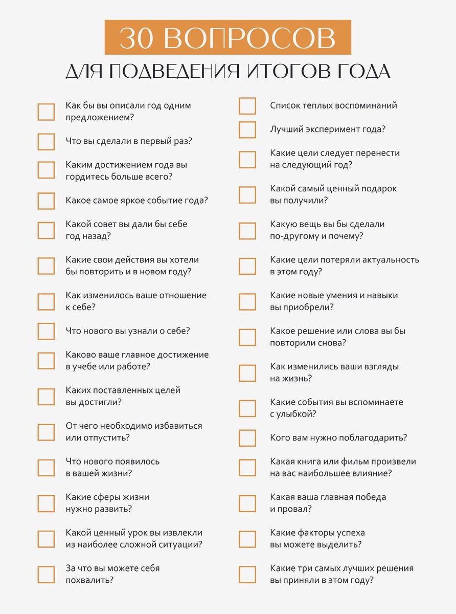✨Чтобы сделать подведение итогов года еще проще, мы подготовили для вас список вопросов. Забирайте его себе и делитесь с друзьями — пусть это станет вашим маленьким ритуалом перед Новым годом ⬆️