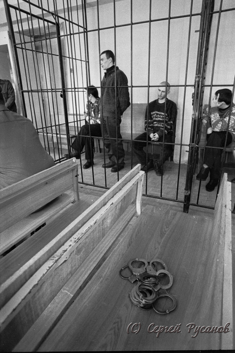 Продолжу ретро рубрику из своего фото архива «Как хорошо мы плохо жили» фоторепортажем 1999 года с заседания тюменского областного суда по делу о «Ялуторовской банде». Из материалов следствия стало тогда известно, что в ОПГ (организованную преступную группировку) на начальном этапе входили четыре человека: создатель ОПГ, милиционер из Ялуторовска Штыков, бывшие уголовники Михайлов и Домокуров, а также тренер местной спортивной школы Шалагинов. В 1996 году к ним присоединились бывшие десантники Алексеев и Зайцев, а также начальник отдела администрации Голышмановского района по делам охоты Магжанов. Члены «Ялуторовской банды» промышляли грабежами, разбойными нападениями и бандитизмом. Основным видом преступной деятельности банды стали убийства: в период с 1995 по 1997 год жертвами группировки стали 15 человек. При этом бандиты нередко лишали жизни людей из-за старых обид. Так, штатный киллер ОПГ Михайлов убил местного жителя Докукина из-за ссоры, которая когда-то произошла между ними в к