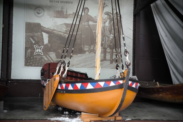 В Музей Мирового океана привезли реплику деревянного ботика Петра I. Об этом корреспонденту Калининград.Ru рассказали в пресс-службе учреждения. Копию лодки «Святой Николай» изготовили на петрозаводской верфи деревянного судостроения. Реплику выполнили в натуральную величину — в длину она чуть больше шести метров, а в ширину — два метра. «На такой же лодке молодой царь Пётр I в 1688 году получил первые уроки судовождения по Яузе и Просяному пруду в селе Измайлово под Москвой. <...> С лёгкой руки Петра I уже в 1722 году его стали называть „дедушкой русского флота“», — рассказали в пресс-службе музея. На бортах судна разместили чередующиеся треугольники белого, синего и красного цветов. Кормовые фальшборты покрыли росписью повторяющихся завитков растительного орнамента. «Гакаборт ботика украшен композицией с фигурой Святого Николая — покровителя моряков и мореплавания. Ниже композиции, на самом транце, помещены стилизованные маскароны, сочетающие черты головы льва и человека», — отметили