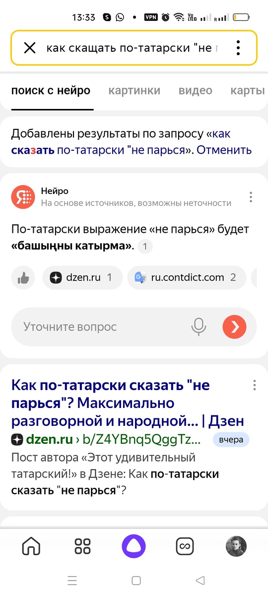С появлением механизма "яндекс-нейро", узкие вопросы, которые я задаю, а читатели отвечают про определенные выражения (как правило, это русский сленговый фразеологизм, к которому я прошу подобрать татарский вариант), начинают иметь особый смысл. Если я перенесу комментарий с ответом в текст страницы, то нейронка его анализирует, и выдает готовый ответ. Так мы поможем интересующимся людям. Пока что иных источников контента для изучения тонких моментов, увы, маловато.