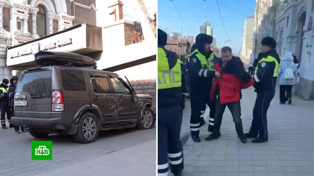 [ Смотреть видео на сайте НТВ ] В центре Владивостока задержали мужчину, который всего за несколько минут успел совершить целую серию серьезных правонарушений. Он въехал в кафедральный собор, протаранил патрульную машину, врезался в автобус, который высаживал пассажиров, устроил еще несколько аварий — все это на угнанном внедорожнике. При этом мужчина не мог не понимать, что он нарушает закон — он бывший сотрудник правоохранительных органов. Репортаж с центральной площади Владивостока вели многочисленные очевидцы. Казалось, что водитель внедорожника не в себе. Сначала он врезался в двери кафедрального собора и даже успел сделать фотоотчет из салона авто. На уговоры полицейских не реагировал, а затем и вовсе пошел на таран патрульной машины. Что было в этот момент в его голове или какая нечисть вселилась, неясно, но неадекватный водитель даже не собирался скрываться. Сделав круг по площади и порядком набрав скорость, он вновь попытал атаковать полицейских. И только после этого человек з
