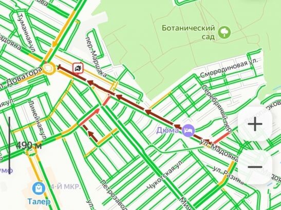 Из-за этого ДТП на обеих улицах образовались серьезные пробки. По данным онлайн-карт, на улице Мадояна пробка растянулась на 1,5 километра. Она начинается от пересечения с Лесопарковой и продолжается до места аварии. Водители рекомендуют объезжать этот район.