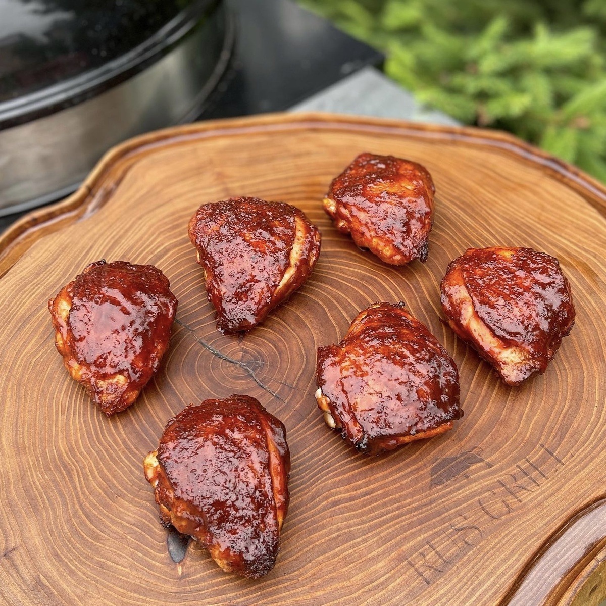 Друзья, приветствую! Сегодня делюсь с вами рецептом шикарных бедер барбекю😉 Подготовьте смесь из соли, паприки, тростникового сахара и сушеного чеснока и натрите ей куриные бёдра. Разогрейте гриль до 150 градусов и отправьте бедра в зону непрямого жара, добавьте щепу для копчения. Через 40 минут смажьте бёдра глазировкой из соуса барбекю, мёда и сока лимона и готовьте еще 10 минут. Все готово, друзья, рецепт максимально простой, но очень вкусный😍 Буду благодарен за ваши лайки и комментарии!🤝🏻