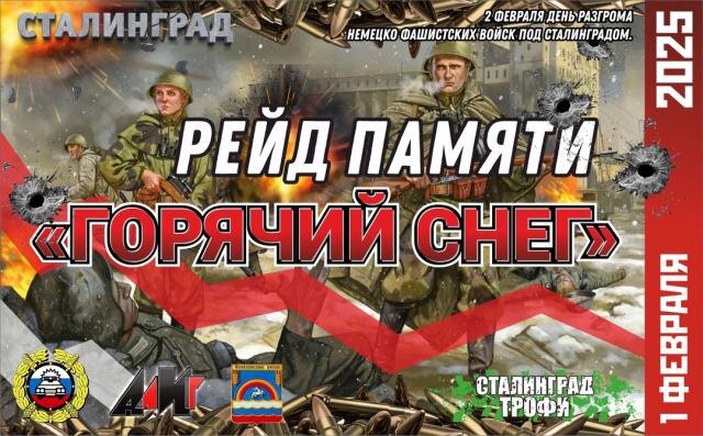 Организаторы – внедорожный клуб «Сталинград Трофи» - приглашают всех желающих присоединиться к автопробегу. Как сообщают устроители, рейд памяти «Горячий снег» состоится в канун 82-й годовщины Сталинградской Победы, переломившей ход Второй мировой войны, но доставшейся ценою миллионов жизней. 1 февраля автолюбители посетят места самых кровопролитных боев и вспомнят защитников нашей земли. Маршрут протяженностью порядка 130 км будет проложен по Иловлинскому району. Детали обещали раскрыть на брифинге. Но уже сейчас представители клуба признались, что раньше не посещали запланированные точки. Также уже известно, что 30% трассы пройдет по асфальту, 70% - по полевым, фронтовым дорогам. Старт рейду памяти дадут на «Солдатском поле», на выезде из Волгограда в Городищенском районе (координаты: N 48*48.896, E 44*26.747), в 08.00. Но с 06.00 до 07.00 участники пройдут регистрацию, в 07.00 состоится брифинг, после которого активисты возложат цветы к монументу. В 07.30 машины построятся в колонну