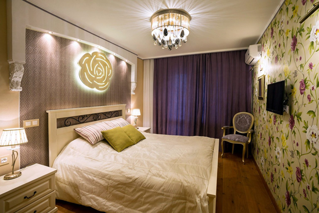 Искусственный свет тоже играет важную роль. Холодное белое освещение лучше сочетается с нейтральными и холодными оттенками обоев, а тёплый жёлтый свет — с тёплыми тонами.
