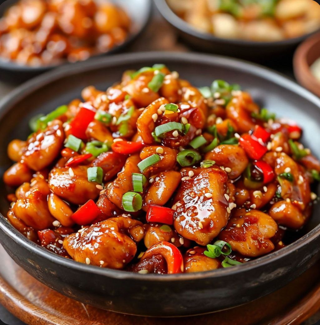 Курица Гун Бао (宮保雞丁) — это блюдо из провинции Сычуань. Оно сочетает обжаренные кусочки курицы, арахис и перец чили в пикантном соусе. Классический рецепт богат ароматами благодаря использованию сычуаньского перца, который добавляет блюду уникальную "онемевшую" остроту. --- Часть 1: Подготовка ингредиентов Основные ингредиенты: Куриное филе — 500 г Арахис (жареный) — 100 г Сычуаньский перец — 1 ч. ложка Сушёный красный чили — 6–8 штук Чеснок — 4 зубчика Имбирь — 20 г Зелёный лук — 2–3 стебля Для маринада: Соевый соус — 2 ст. ложки Рисовый уксус — 1 ст. ложка Кукурузный крахмал — 1 ч. ложка Растительное масло — 1 ч. ложка Для соуса: Тёмный соевый соус — 2 ст. ложки Лёгкий соевый соус — 1 ст. ложка Рисовый уксус — 1 ст. ложка Сахар — 1 ст. ложка Кукурузный крахмал — 1/2 ч. ложки Вода — 3 ст. ложки --- Часть 2: Подготовка курицы 1. Нарезка: Куриное филе нарежьте небольшими кубиками (около 2 см). 2. Маринад: Поместите курицу в миску, добавьте соевый соус, уксус, крахмал и масло. Перемешайт