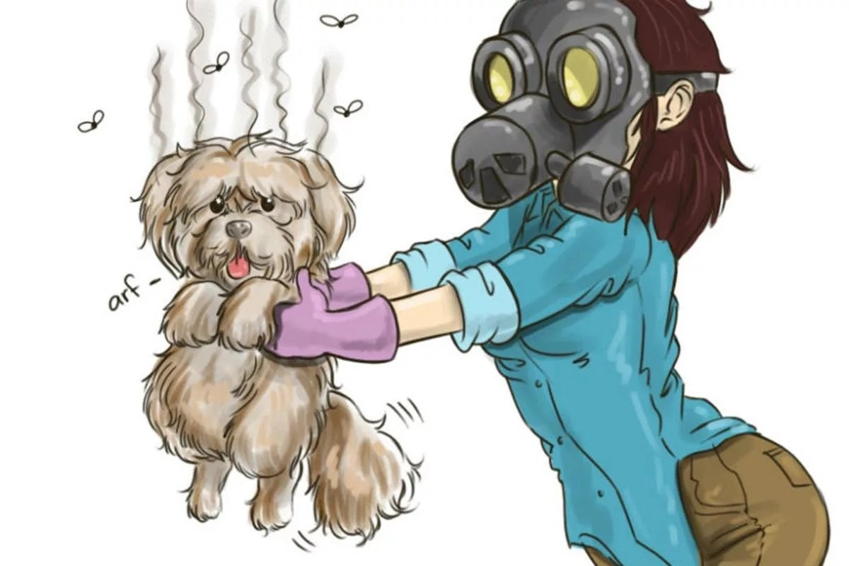 У длинношерстных собак часто шерсть пачкается калом и мочой. При отсутствии надлежащего ухода это будет усиливать запах от кожи и шерсти