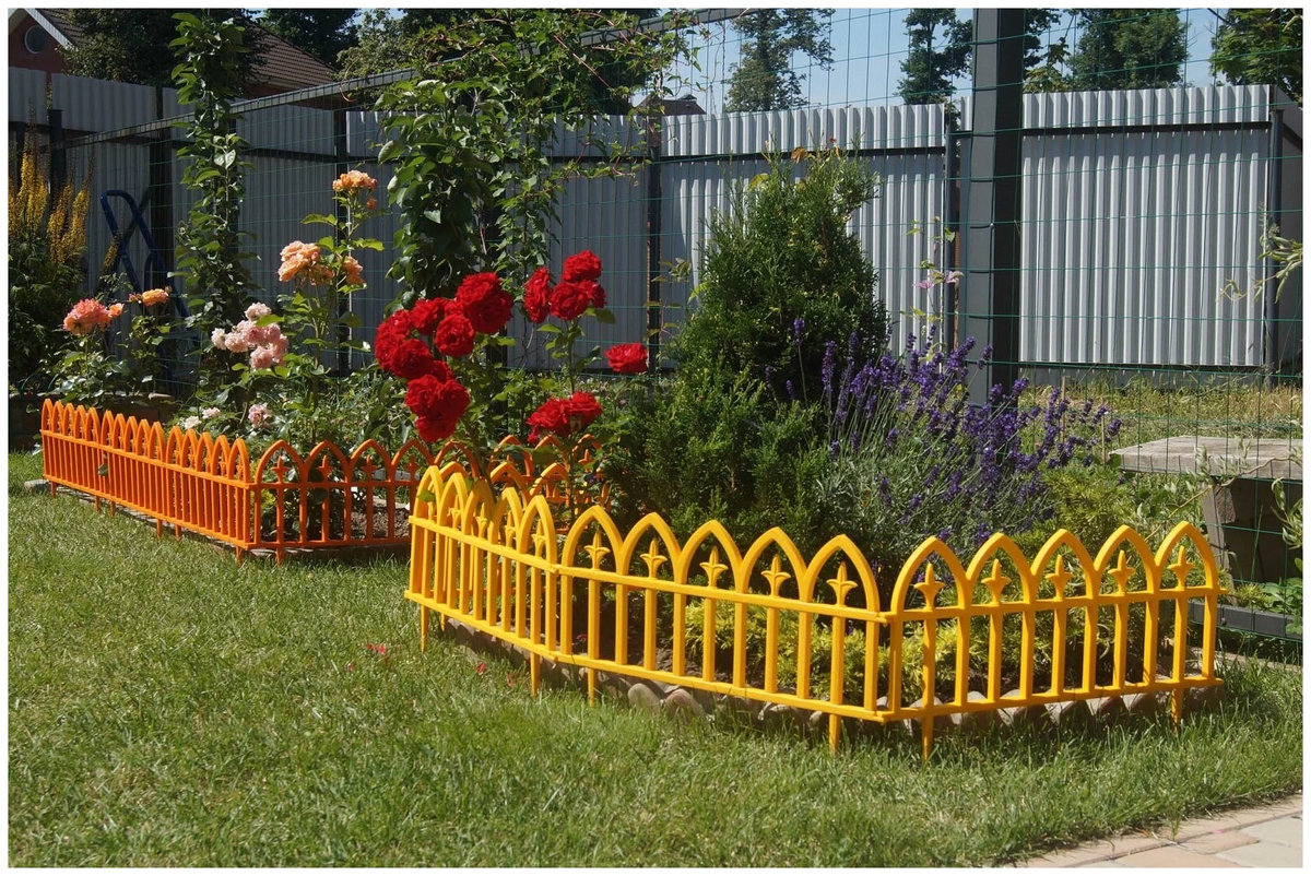 Для выделения клумб используйте специальные пластиковые или полипропиленовые ограждения разных цветов и высоты. Они бывают разборными и неразборными, гибкими и длинными. Так же можно использовать камни, раскрашенные разными цветами акриловых красок.