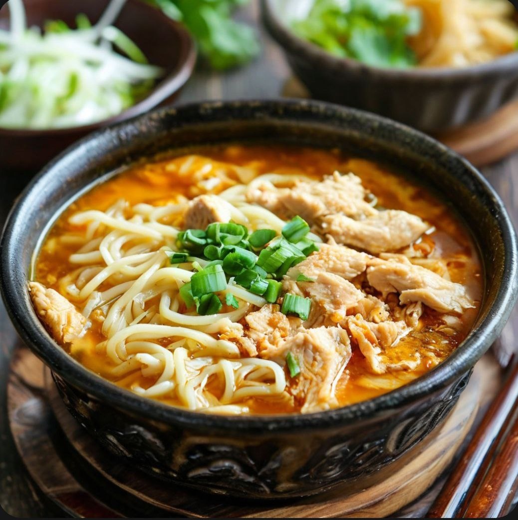 Суп с лапшой и курицей — это классическое китайское блюдо, которое легко приготовить, и оно идеально подходит для холодных дней. Бульон на основе курицы получается насыщенным и ароматным, а лапша добавляет блюду сытности. --- Часть 1: Подготовка ингредиентов Основные ингредиенты: Курица (бедра или грудка) — 500 г Лапша (рисовая или пшеничная) — 200 г Морковь — 1 шт. Лук — 1 шт. Чеснок — 3 зубчика Имбирь — 1 ч. ложка (натертого) Зеленый лук — 2–3 пера Сельдерей — 2 стебля Шампиньоны (по желанию) — 100 г Кунжутное масло — 1 ст. ложка Соевый соус — 2 ст. ложки Соль — по вкусу Перец — по вкусу Листья кориандра — для украшения (по желанию) --- Часть 2: Подготовка бульона 1. Приготовление куриного бульона: В большой кастрюле залейте курицу холодной водой и поставьте на средний огонь. Доведите до кипения и снимите пену, чтобы бульон был чистым. 2. Добавление овощей: Нарежьте морковь и лук крупными кусками. Добавьте их в кастрюлю с курицей. Добавьте также нарезанный сельдерей, чеснок и имбирь.