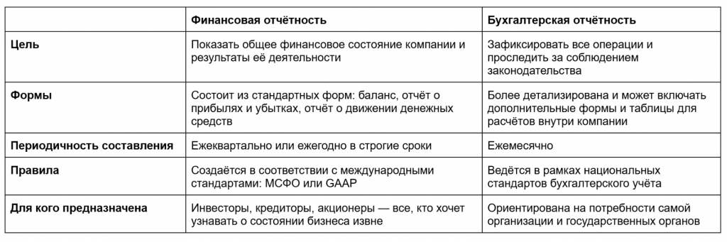 Финансовая и бухгалтерская отчётности — это взаимодополняющие, но разные инструменты. Давайте разберём их ключевые различия.