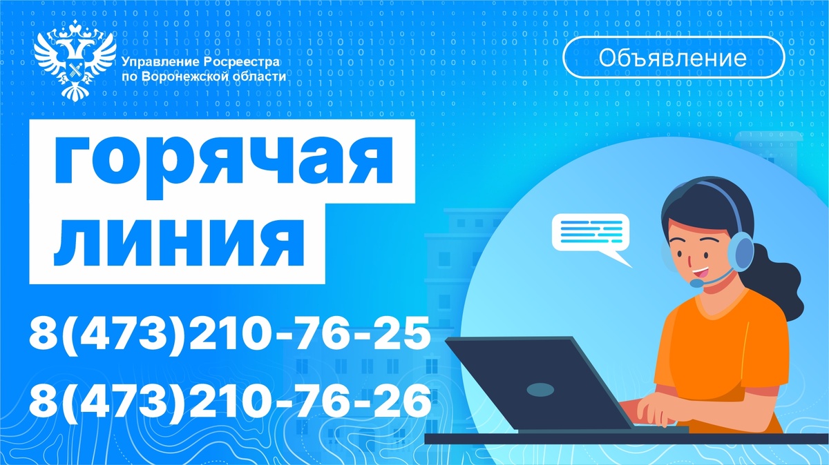 В четверг, 16 января, с 11:00 до 13:00 Управление Росреестра по Воронежской области проведёт консультацию граждан по телефону в формате «горячей линии». Позвонив в указанное время на номер «горячей линии», вы сможете получить консультацию по вопросам государственной регистрации прав, кадастрового учета объектов недвижимости, согласования местоположения границ земельных участков, проведения процедуры межевания, а также исправления реестровых и технических ошибок в сведениях ЕГРН. Номера телефонов для связи: