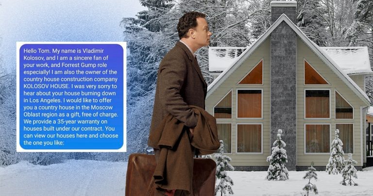 Масштабные лесные пожары случаются в США регулярно. Главная их причина — засуха и ветер. Хотя последние пожары в Калифорнии, говорят, специально устроил Пи Дидди (чтобы уничтожить улики, которые могли быть в домах замешанных звезд). Что же делать бедным голливудским звездам, которые лишились роскошных особняков? Московская строительная фирма в знак благодарности за хорошие фильмы предложила Тому Хэнксу (кстати, его особняк не пострадал, так как обслуживается частной пожарной командой), Дженнифер Энистон, Энтони Хопкинсу, Адаму Сэндлеру и другим звездам, оказавшимся в беде, помочь с переездом в Подмосковье, несмотря на их антироссийские высказывания. Компания готова абсолютно бесплатно построить для них каркасные дома в Московской области, если они выберут регион в качестве основного места жительства, о чем владелец рассказал в своем видеообращении (на русском языке). Понимая, что звезды его увидят, он также разослал им персональные сообщения в соцсетях, приложив фотографии домов, котор