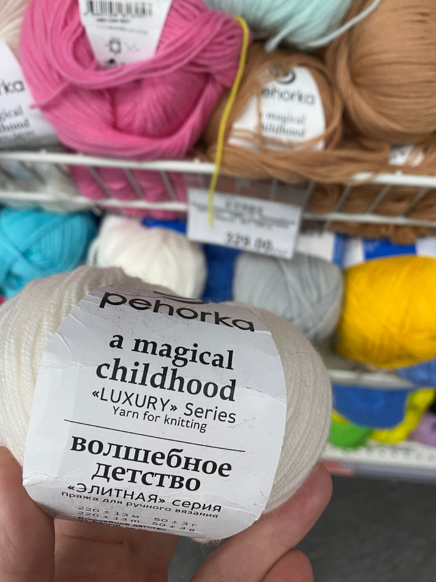 Сегодня была возможность зайти в Леонардо. Увидела эту пряжу на стеллаже и купила один моточек для теста. Первое впечатление - пряжа мягкая, тактильно приятная, немножко ватная. Нить тонкая, 220 метров на 50 грамм. Но очень тонкой визуально она мне не показалась. Обязательно протестируем эту пряжу. В Леонардо цена, как мне кажется, всегда высокая. Моточек обошелся в 329 рублей.