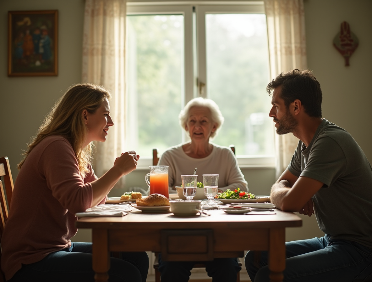 Праздничный стол ломился от угощений. Галина с особой тщательностью расставляла тарелки, то и дело поправляя кружевную скатерть – подарок своей матери. Каждый год она доставала её именно в такие особенные дни, когда вся семья собиралась вместе. Солнечные лучи, пробивающиеся сквозь тюлевые занавески, играли на хрустальных бокалах, создавая на стенах причудливые узоры.